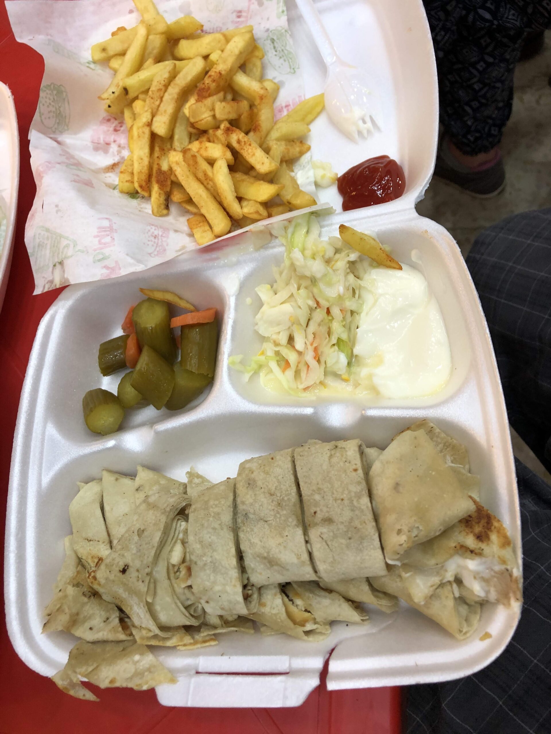 After a few hours, we stopped at a roadside chicken shawarma restaurant from a place called Reem Al-Janoub. I think it was outside the city of Ma’an. In what would be foreshadowing for the rest of the trip we ordered too much food. We had sandwiches, fries, and half of a melon. I thought the sandwich was very good. I later learned that the Jordanians will put food on western style bread rolls that are extremely mediocre. When ordering in Jordan always ask for your sandwich to be made on shrak bread, if they do not have shrak ask for the standard pita.