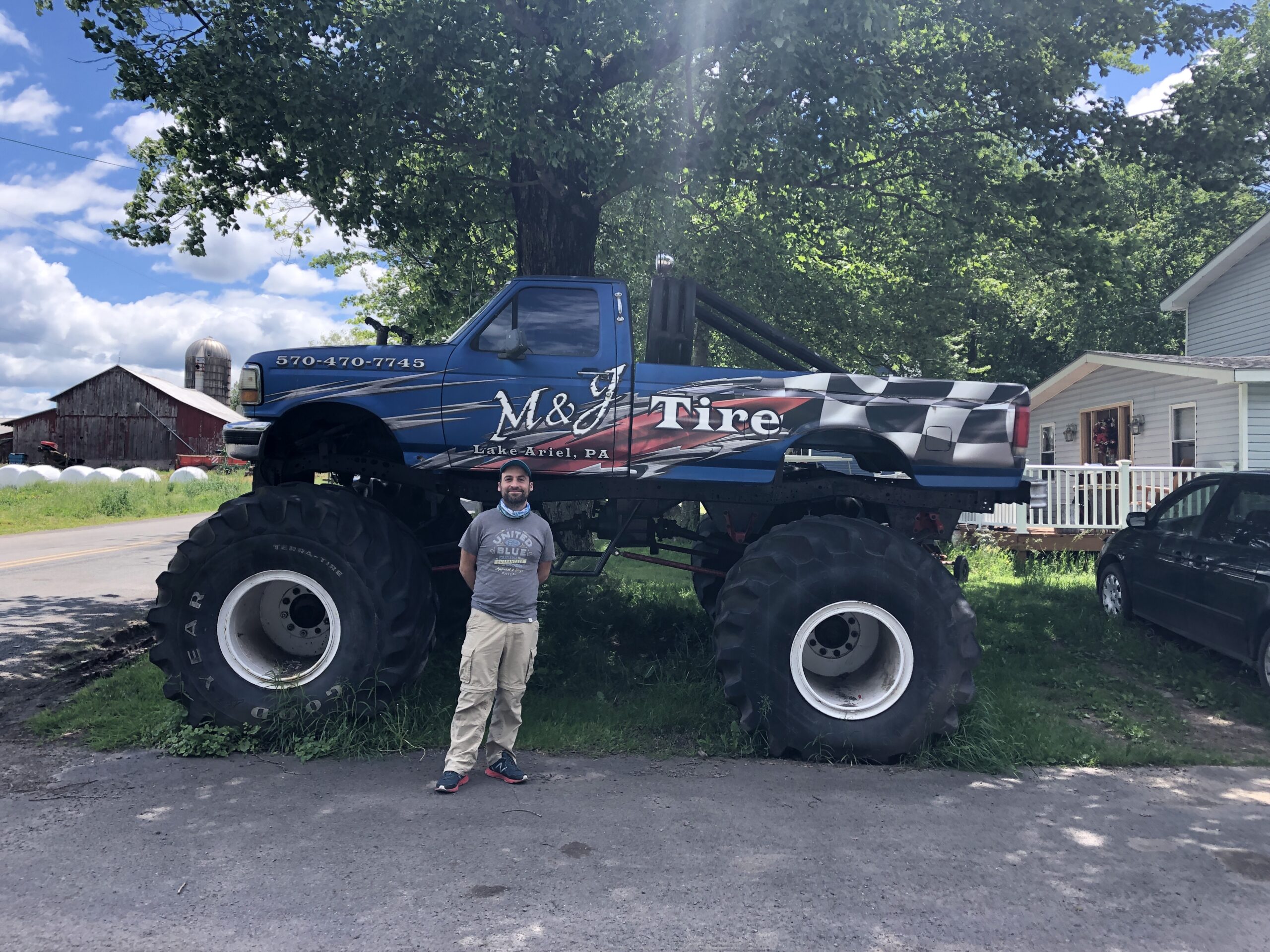 We pulled up to the tire shop and were met by 2 monster trucks flanking the entrance. No one came to meet us. I surmised the one person not fidgeting with a tire may be the customer in front of me. I asked her who was in charge and she pointed me to a guy named Mike in the back of the shop. He was not much for chatting and told me he’d be with me in 5 minutes. To an outsider, this scene may be overwhelming, but my life in rural Ohio prepared me for this. A big shop, lots of tires inside, outside, outback, on their sides, in racks, etc. and a dude who is not good with small talk or business formalities. I’ve got this.