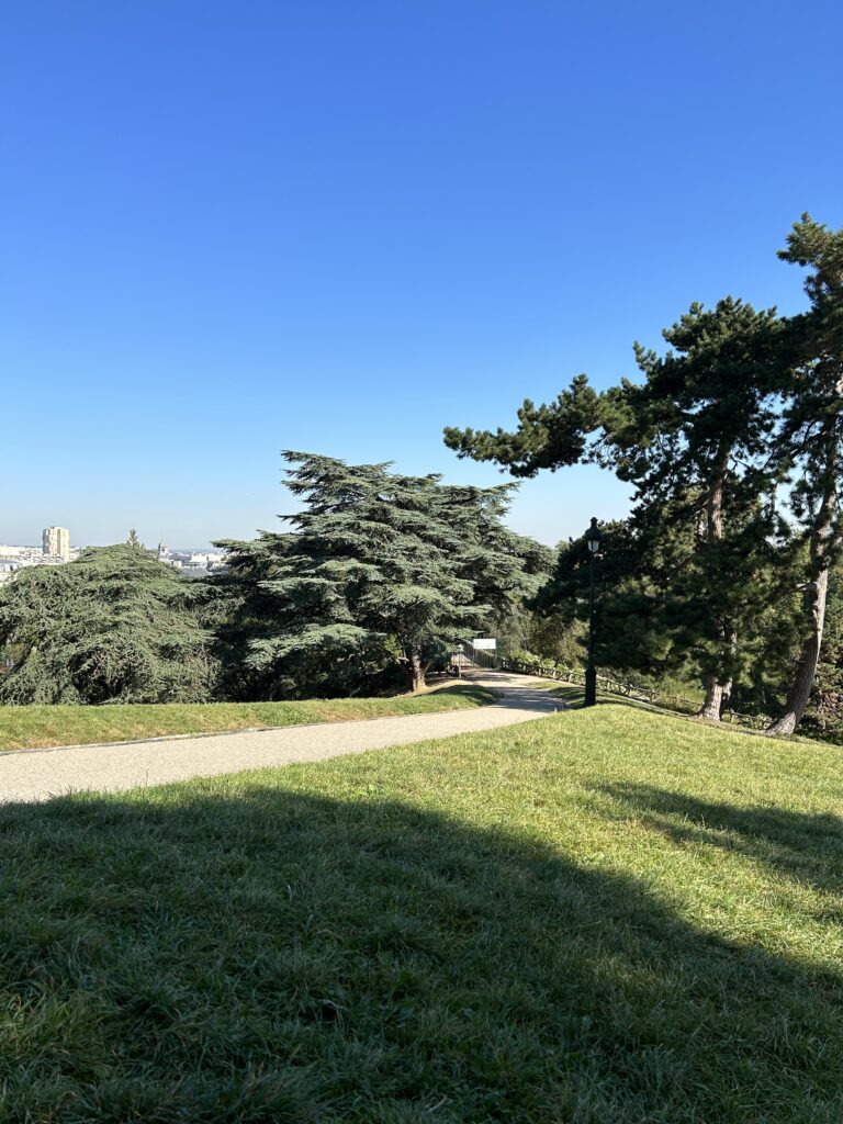 We decided to visit Parc des Buttes-Chaumont. It’s a 150-year-old 60-acre park, and it is a very nice way to enjoy some green in the city. The park’s centerpiece is a lake spanned by a suspension bridge. We could not visit the island on the lake, which has a Temple to Sybille. The park has a few Cedars of Lebanon and many walking trails, making it a lovely place to enjoy nature while still in the city.