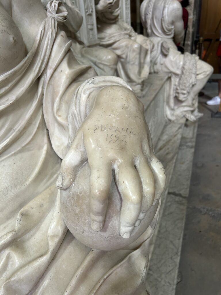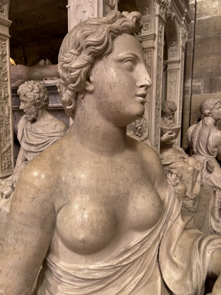The church’s basement has an old crypt, with parts dating to the 9th century. It has been rebuilt over the years, but it is very impressive to be in something this old that is not a ruin. King Clovis I, who died in 511, is entombed here. Saint-Denis was a prime target of revolutionary vandalism due to its connections to the French monarchy. In 1793 the revolutionary government ordered the violation of the sepulchers. To this day, many of the statues have graffiti on them. Did the knowledge of the book help me? I don’t know, but I am glad I read it. I think Saint-Denis is a must-see while in Paris.